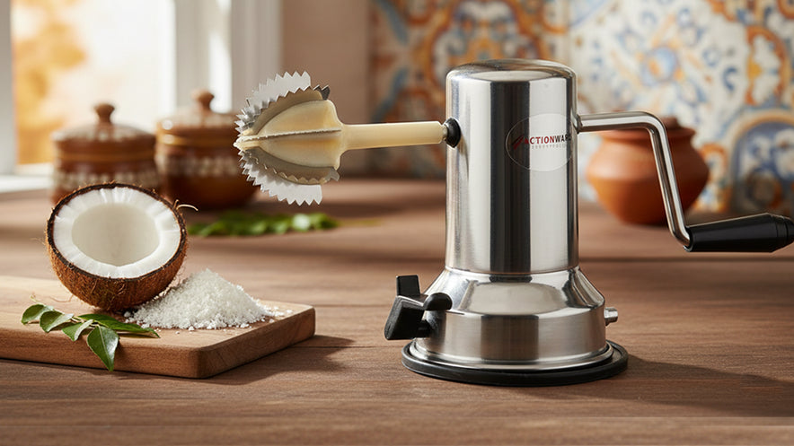 Perfect for preparing traditional dishes, chutneys, and desserts, the Action Stainless Steel Coconut Scraper is a reliable addition to any kitchen!