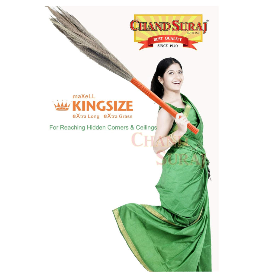 The Chand Suraj Grass Broom Maxel is designed for effective and effortless cleaning. Made from high-quality natural grass, this broom efficiently sweeps away dust and dirt from all types of floors, including tiles, marble, and wood. Its sturdy grip ensures comfortable handling, making daily cleaning hassle-free.